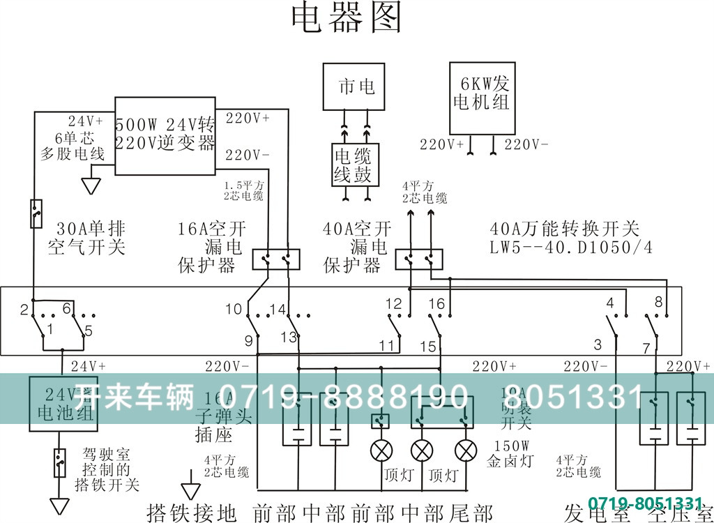1、逆变电源的使用 打开驾驶室的总电源开关,打开点火开关,使蓄电池旁的搭铁继电器吸合;打开右设备仓中